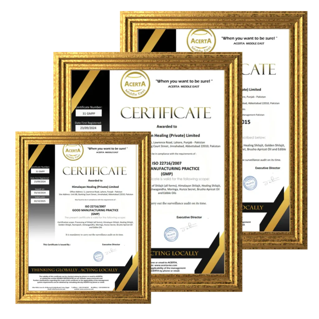 Certifications of Healing Shilajit